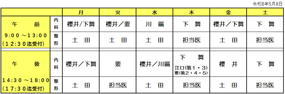 ※担当が変更になる場合があります。事前にお電話での確認をお願いします。